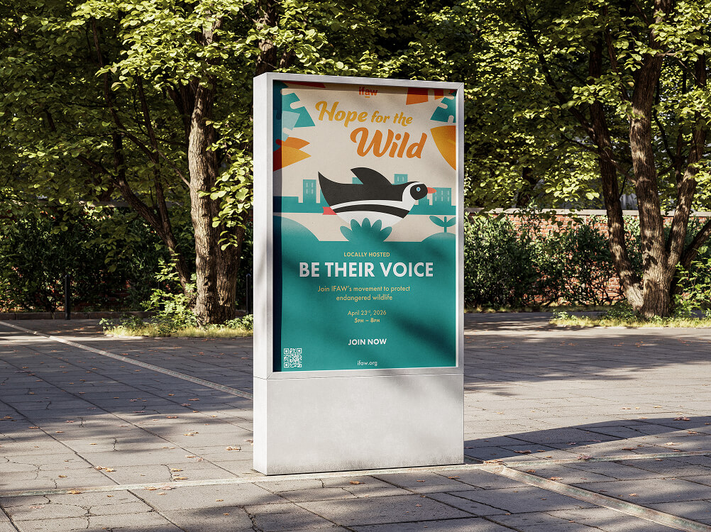 A unique, stylized campaign design for IFAW (International Fund for Animal Welfare) advocating for support towards endangered species.